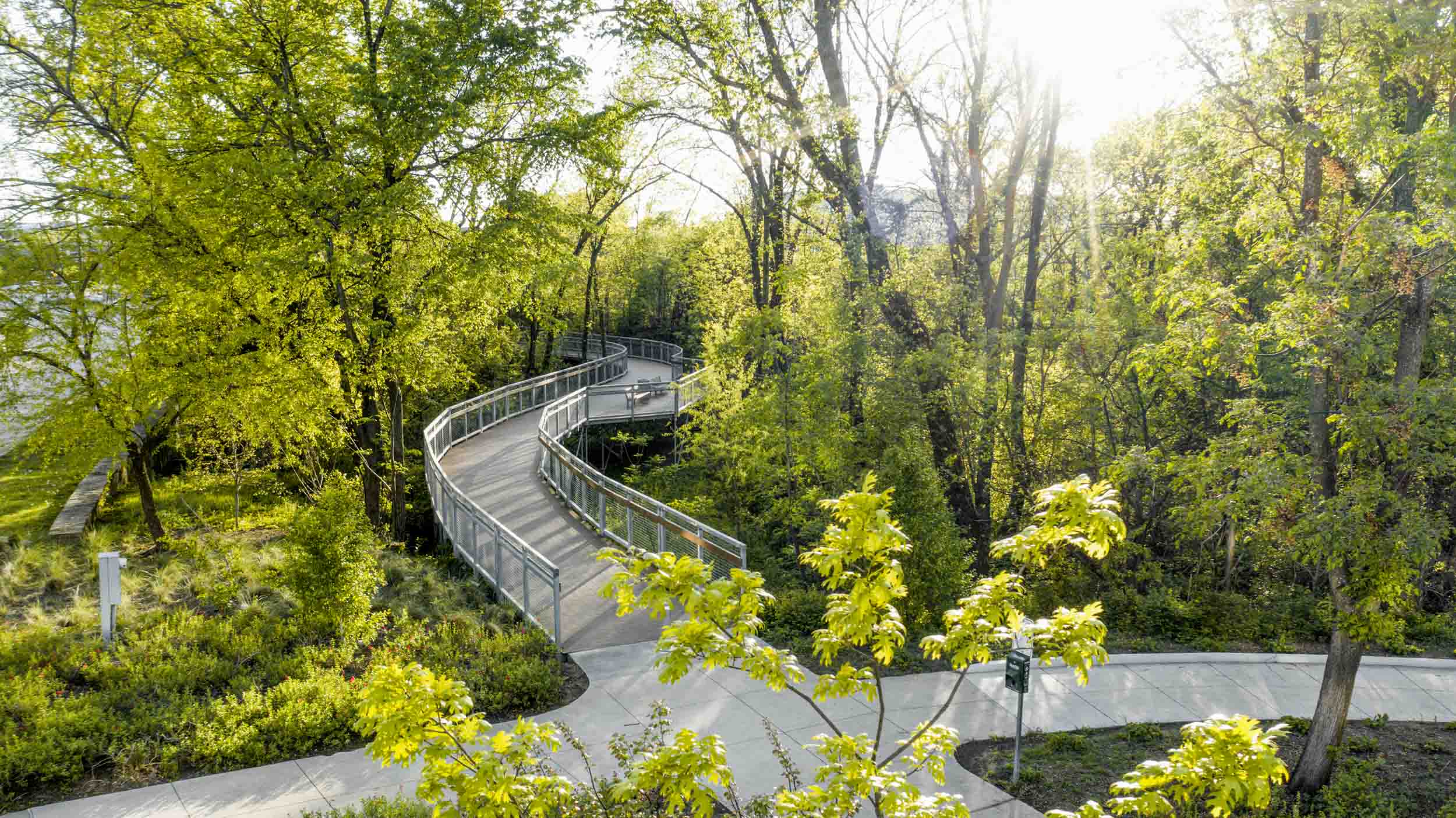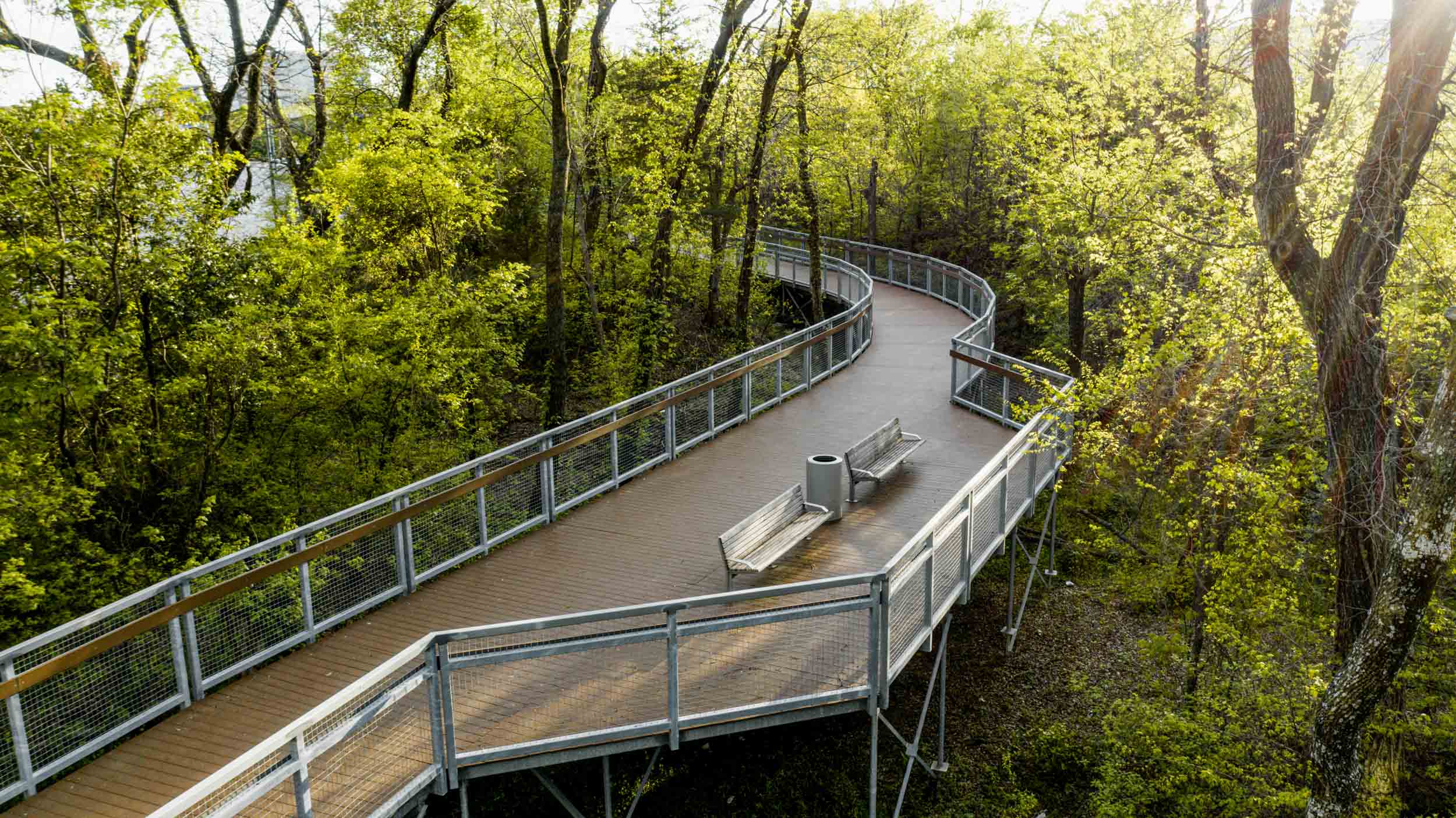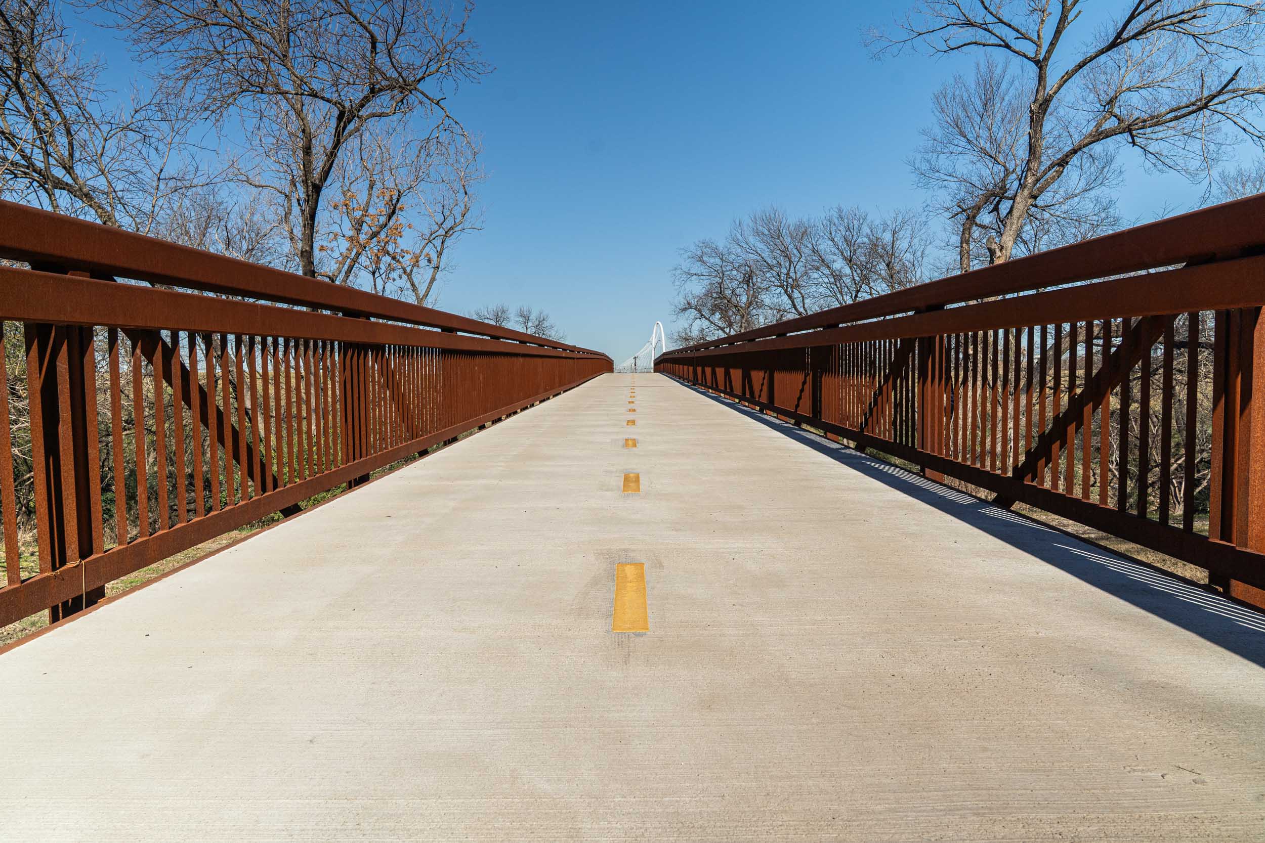 Construction of multi-use trail systems, hike and bike corridors, elevated boardwalks, and bridge structures designed to support bicycles, maintenance vehicles, and public use while providing safe, long-term crossings within parks and public spaces.