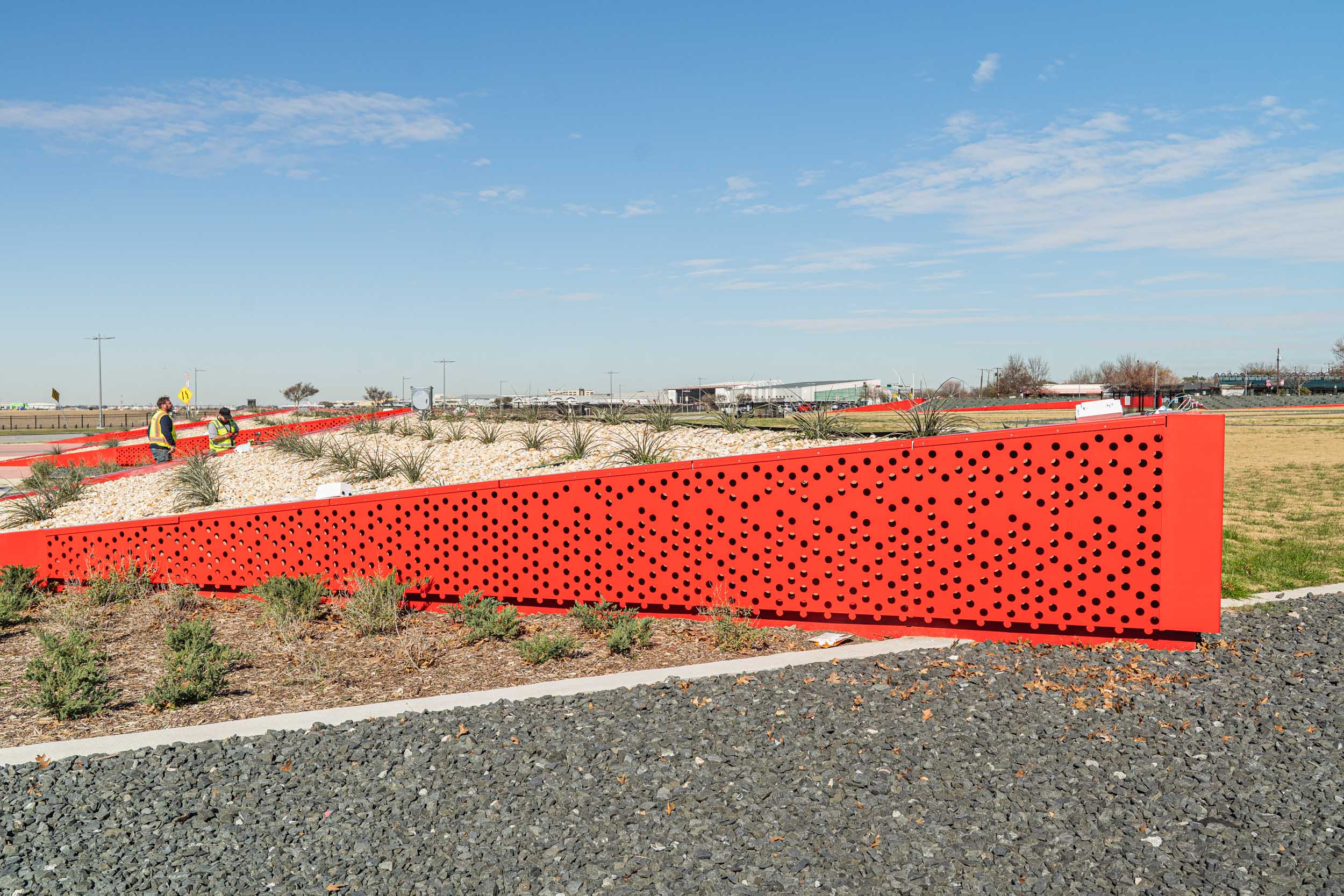 Construction of high-visibility public amenities and destination spaces including architectural concrete, custom metal and shade structures, integrated lighting, site features, and large-scale landscaping.