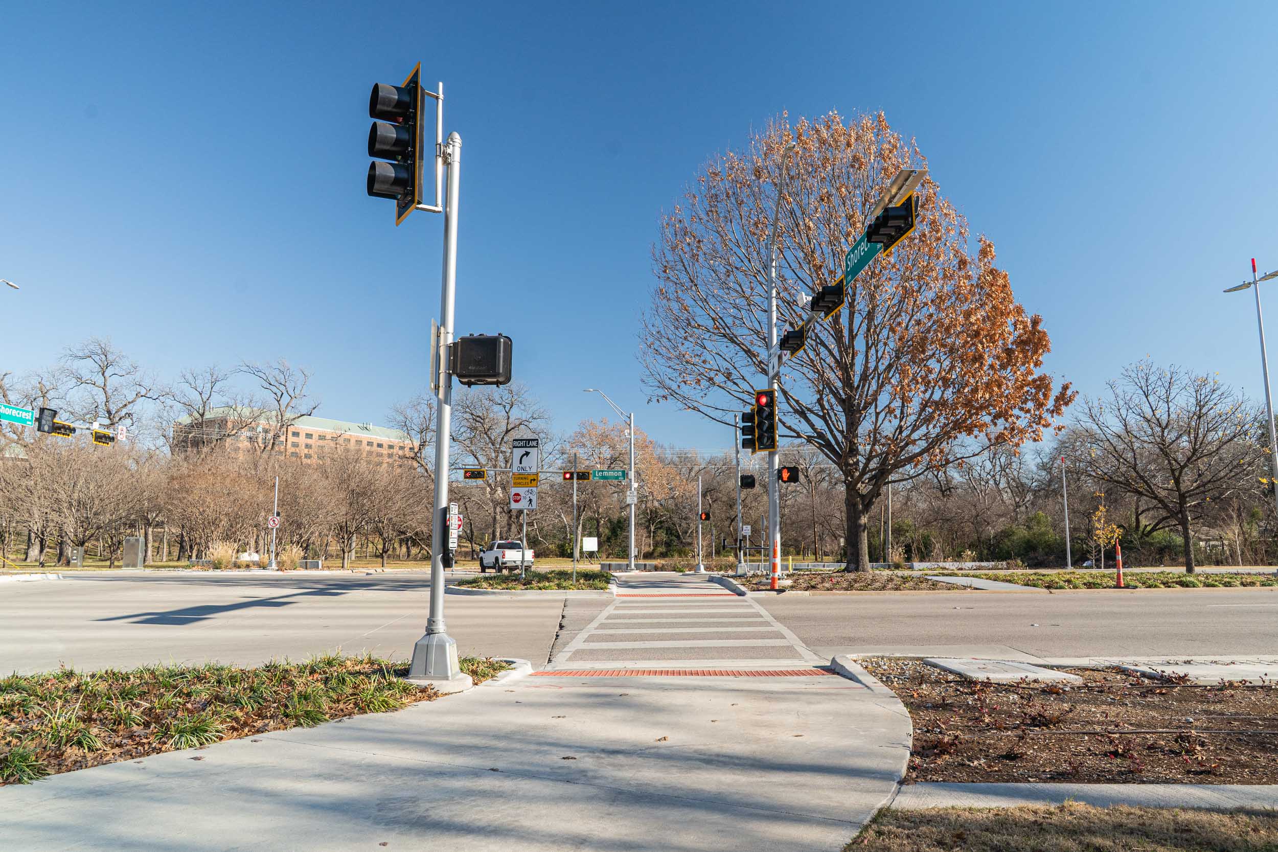 Construction and coordination of public infrastructure elements including lighting, crosswalks, traffic signals, signage, walkways, and streetscape improvements that supporting safety, accessibility, and long-term public use.